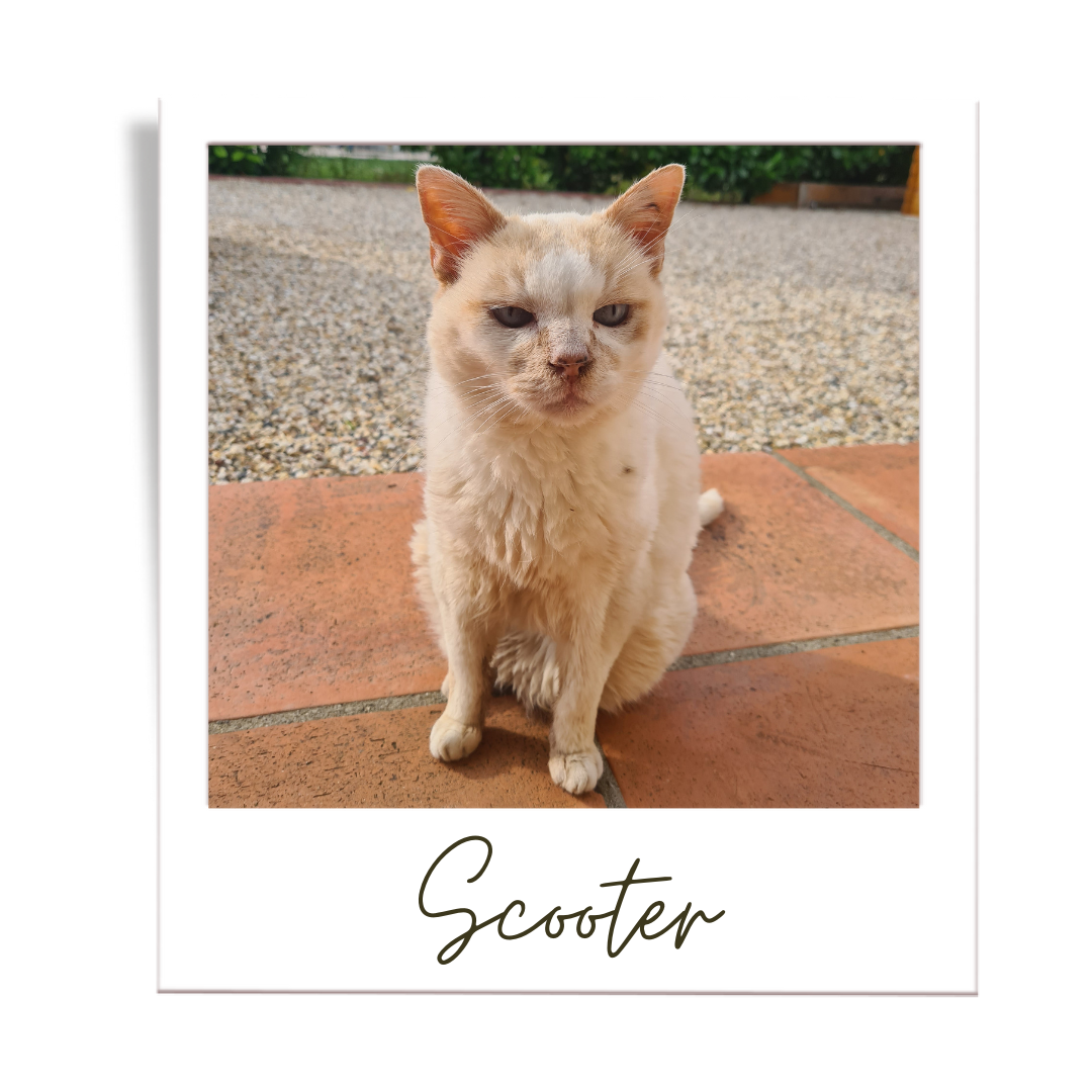 Scooter, plus connu sous le nom de Meu, est le chat des parents d'Oscar, et également le beau-chat de Cacahuète.